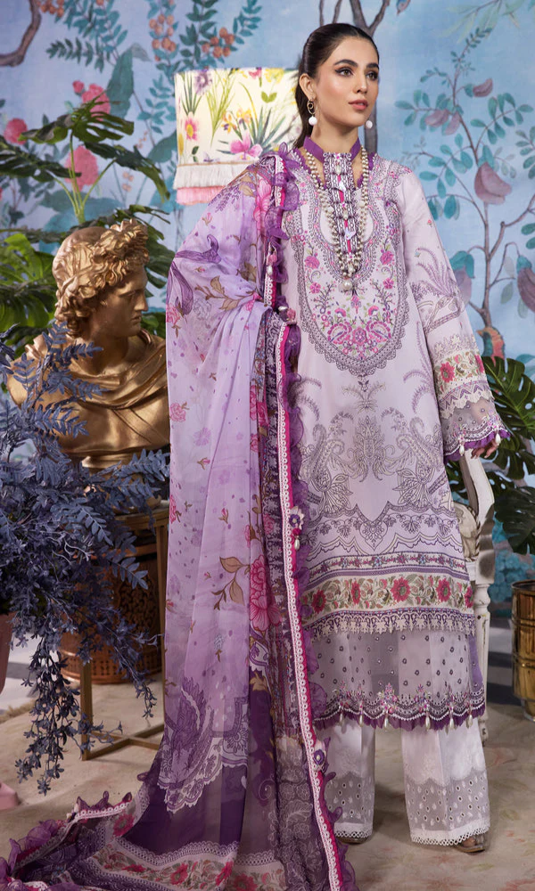 Anaya- 3PC Embroidered Printed Shirt with Printed Chiffon Dupatta