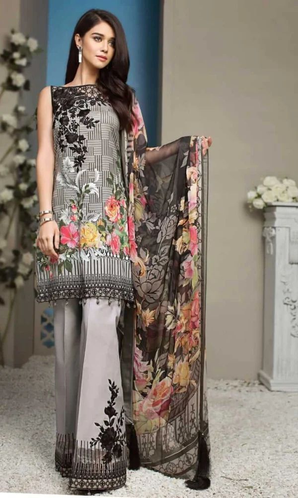 Anaya – 3PC Lawn Embroidered Shirt With Printed Chiffon Dupatta