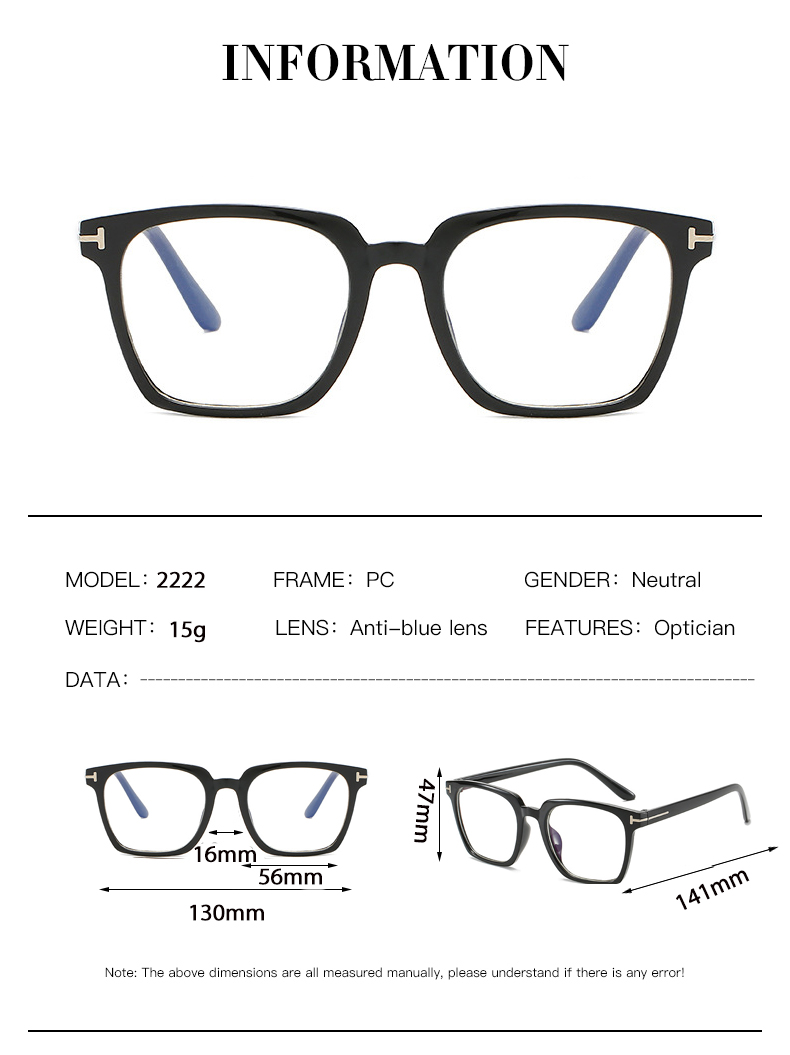 Specifications of Anti Radiation Glasses for Women Retro Square Glasses Frame Anti Blue Light Eyeglasses
