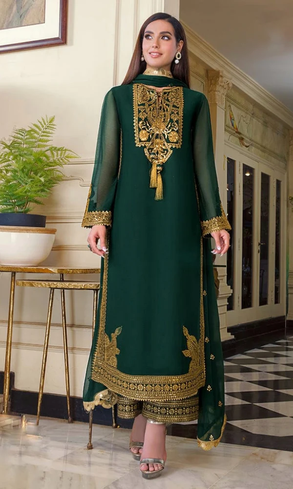 🔷 Front Heavy Embroidered With Neckline With Daman Patch
