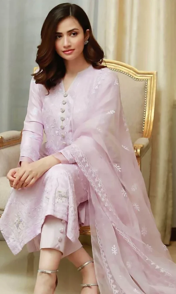 Bareeze – 3PC Lawn Heavy Embroidered Shirt With Organza Embroidered Dupatta