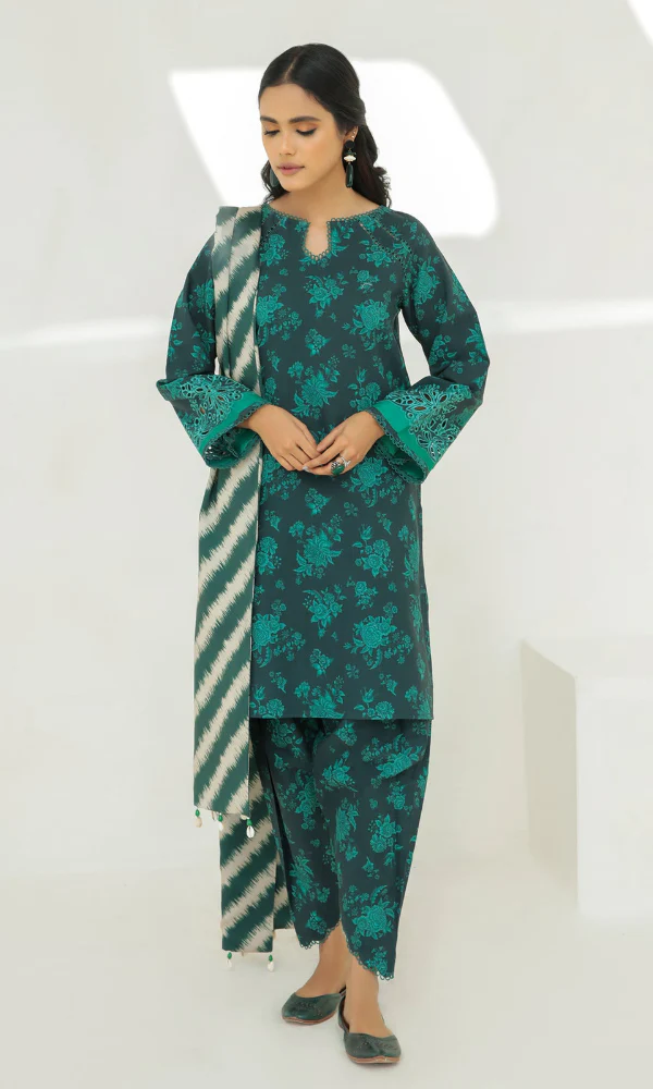 Baroque- 3PC Lawn Digital Printed Shirt With Printed Voil Dupatta 1