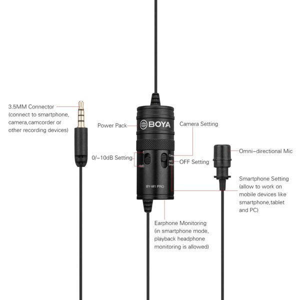The BOYA BY-M1 Pro is a universal lavalier microphone, which compatible with smartphones, PC, cameras, audio recorders, and other recording devices, etc.