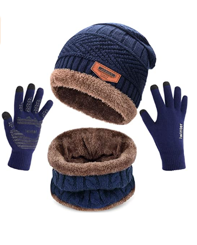 BURU Luxury 3 Pc Full Beanie Set Winter Beanie Cap Neck Warmer & Gloves Set