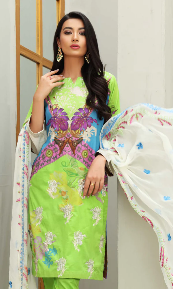 Charizma- 3PC Lawn Printed Shirt With Printed Chiffon Dupatta
