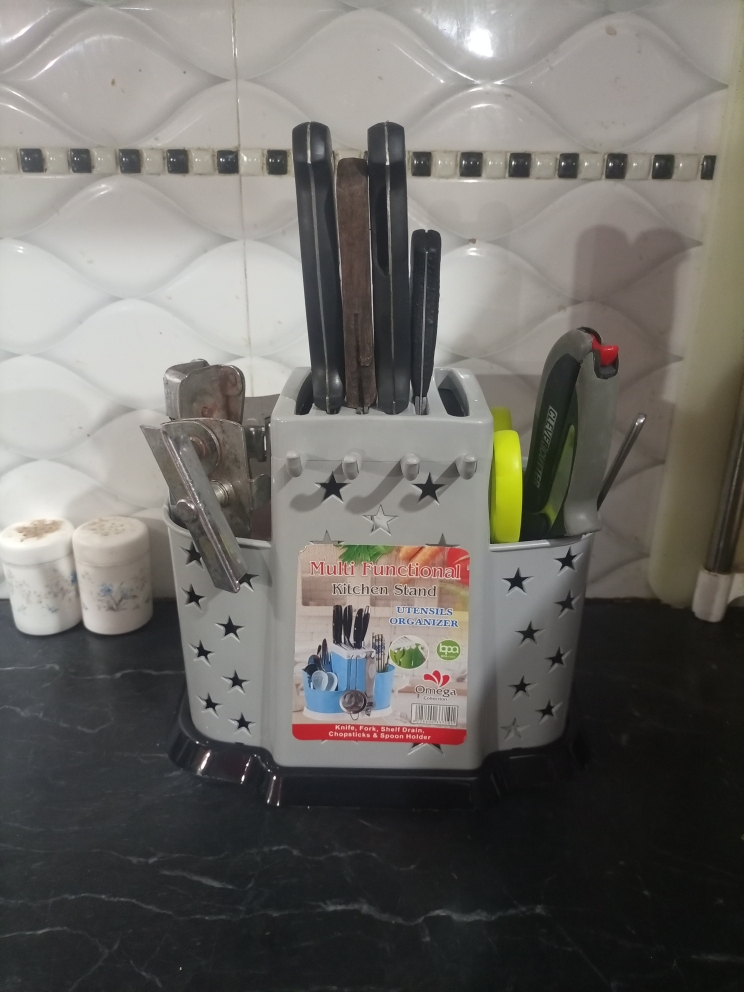 Material: Fine Plastic, Moisture proof, stable base, Saves space on your worktop and safely stores your knives ,easy to clean.