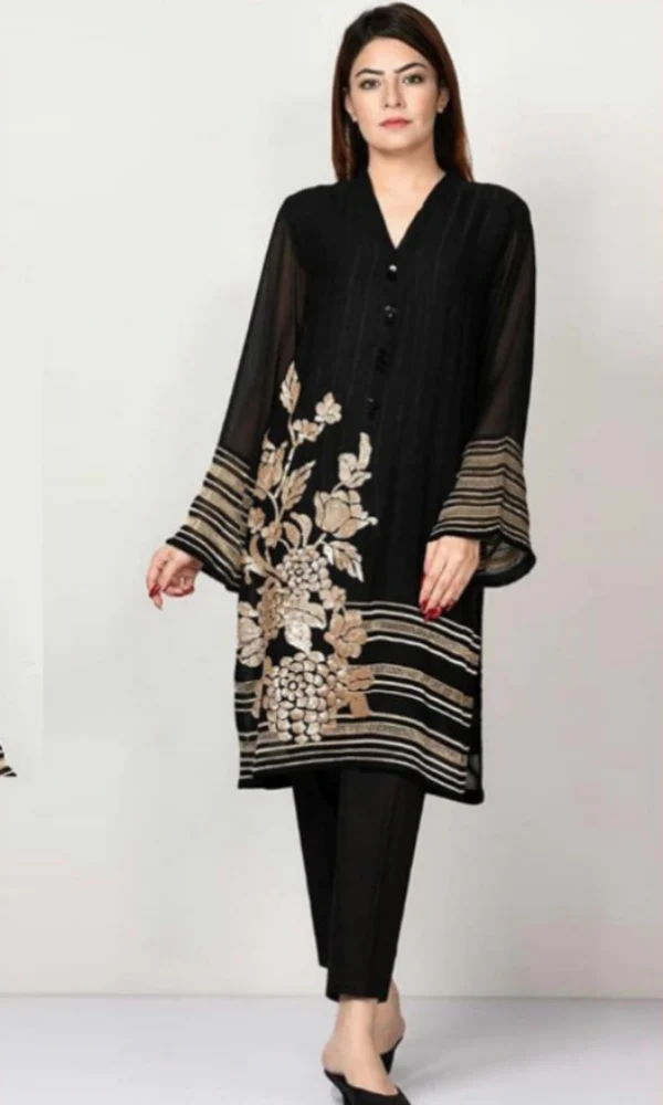 🔷 Embroidered Sequnce Work with Dhanak Sleeves