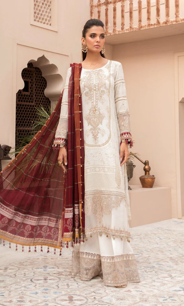 Maria.b – 3PC Embroidered Printed Shirt With Printed Chiffon Dupatta