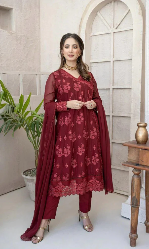 Organza Front Full Heavy Embroidered(45 Inches To Make Model Style Frock Flare)