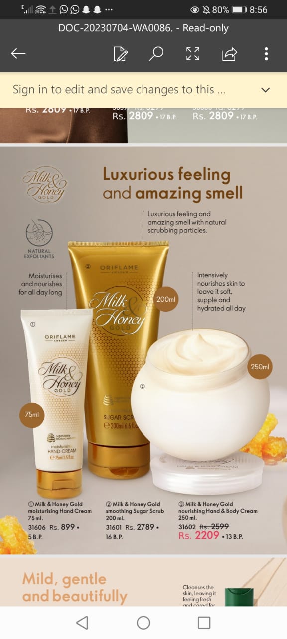 milk and honey moisturising cream ,sugar scrub , hand and body cream