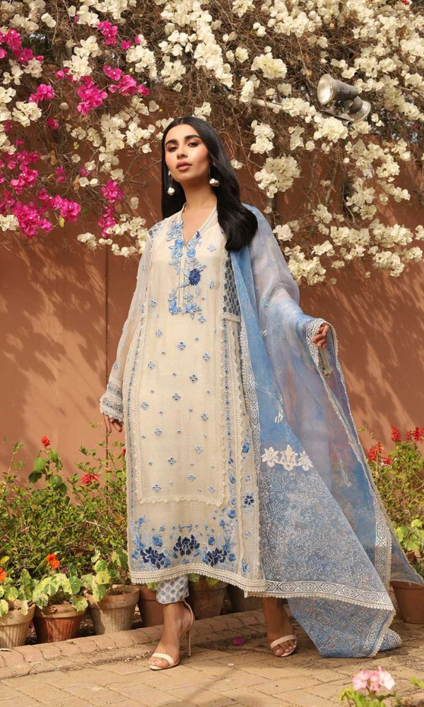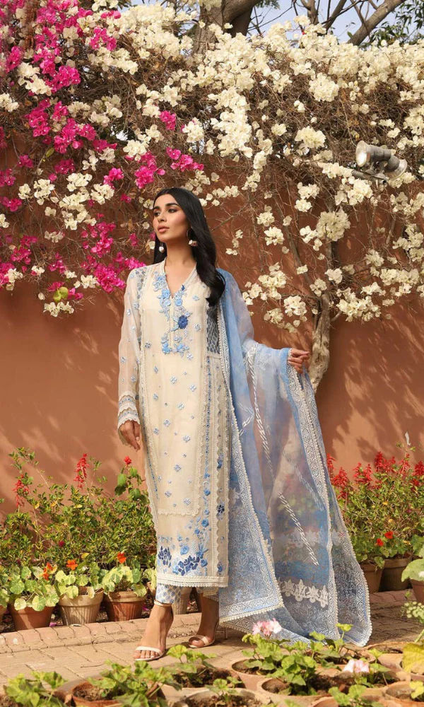 Nadia Farooqi – 3PC Embroidered Organza Shirt With Embroidered Organza Duppata