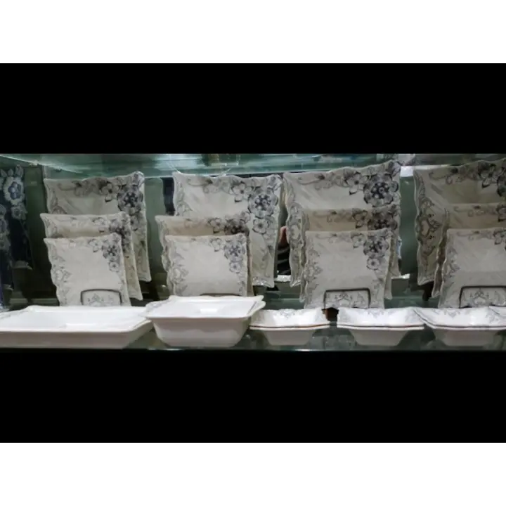 8 Flat Plates , 8 Deep Plates , 8 Small Plates , 8 Sweat Bowl , 2 Donga with (Dhakan) , 1 Donga Without Dakan , 2 Rice Dishes , 2 Salan Spoon , 2 Rice spoon , 8 Plastic spoons and other pieces etc