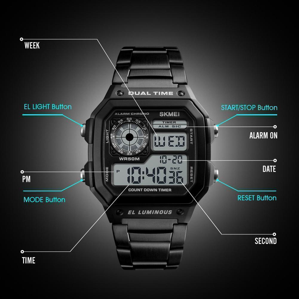 Skmei 1335 Men Sports Watches Count Down Waterproof Watch Stainless Steel Fashion Digital Wristwatches