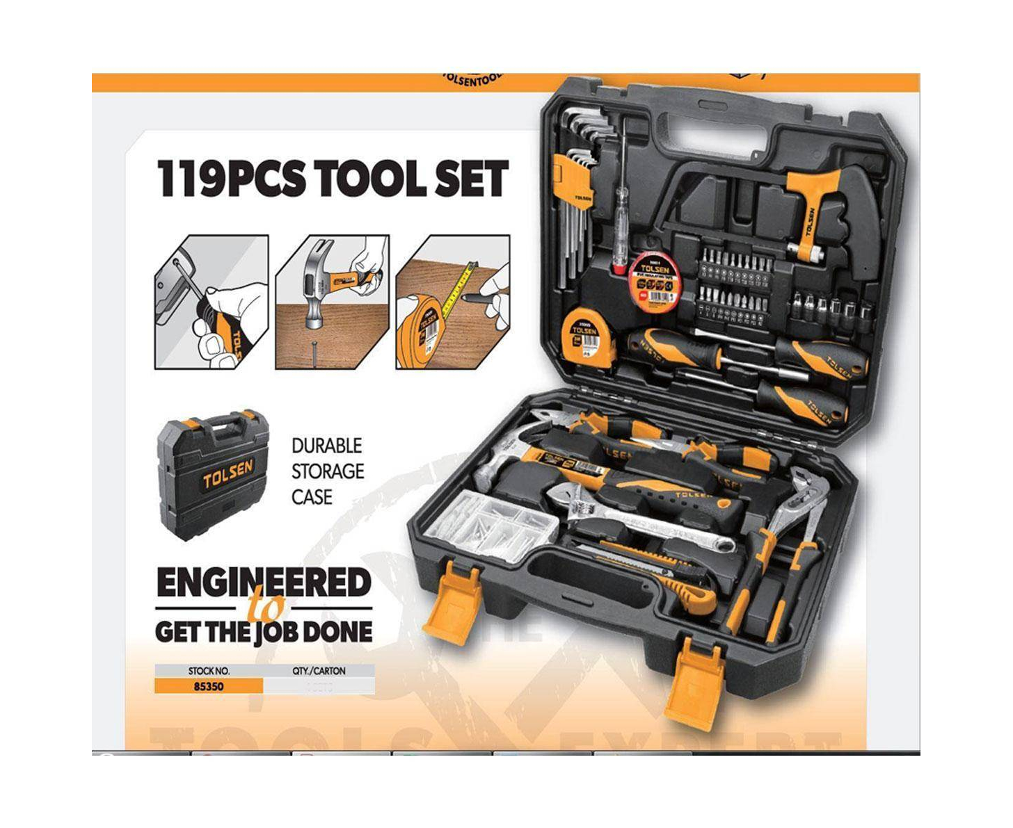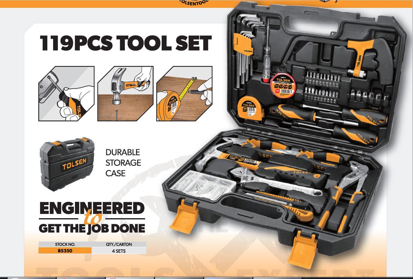 Tolsen 119 pcs Complete Hand Tool Set w/ Hard Case